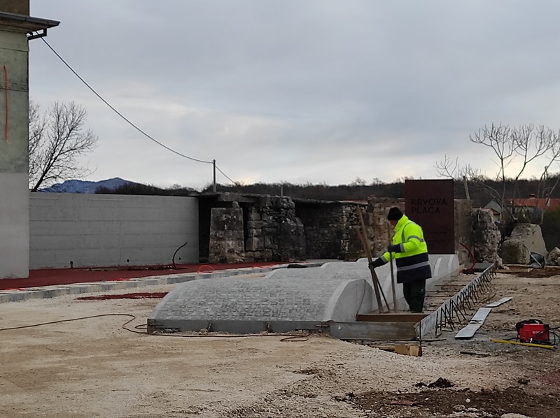 Jučer je postavljen crveni beton, kao vrlo efektan detalj, na dijelu novouređene Krvove place.
