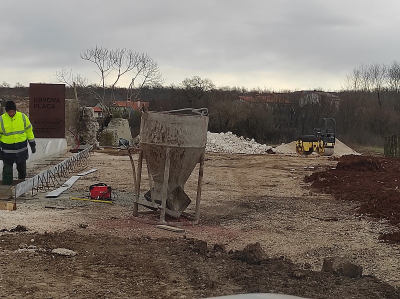 Projekt uređenja Krvove place izradio je Arhitektonika Studio d.o.o. Labin, dok radove vrijedne oko 450 tisuća kuna, iz programa redovnog održavanja komunalne infrastrukture Grada Labina, izvoditi trgovačko društvo 1. Maj d.o.o. iz Labina.
