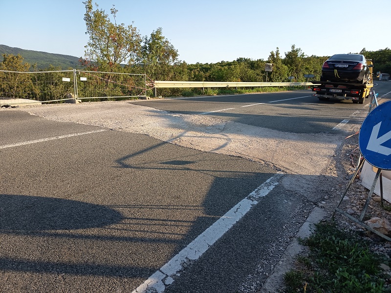 Nigdje nema upozorenja da radovi još traju, mada je na jednoj strani ceste postavljena željezna ograda, a na drugoj se i dalje nalaze radni strojevi i dio prekopanog zemljišta (van ceste) i nabacan grubi šljunak. Istini za volju ako vozite iz smjera Vozilića, imate znak, obaveznog mijenjanja voznog traka, zbog čega, jasno je (valjda) samo izvođačima „radova“.
